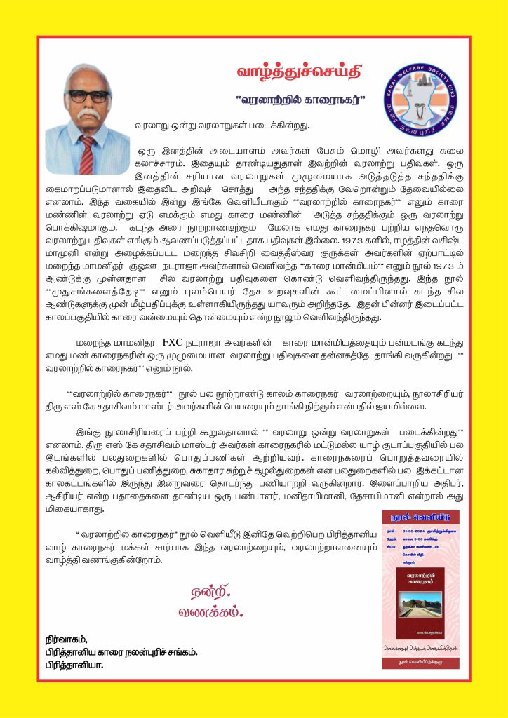‘வரலாற்றில் காரைநகர்’ நூல் வெளியீடு March 30, 2024 Post navigation Previous Previous post: கண்ணீர் அஞ்சலிNext Next post: தமிழ் புத்தாண்டு வாழ்த்துக்கள் 2024 Related News காரை கதம்பம் 2025 : நிகழ்வறிக்கை February 22, 2025 காரைநகர் பட்டறை : சதுரங்க போட்டி 2025 January 5, 2025