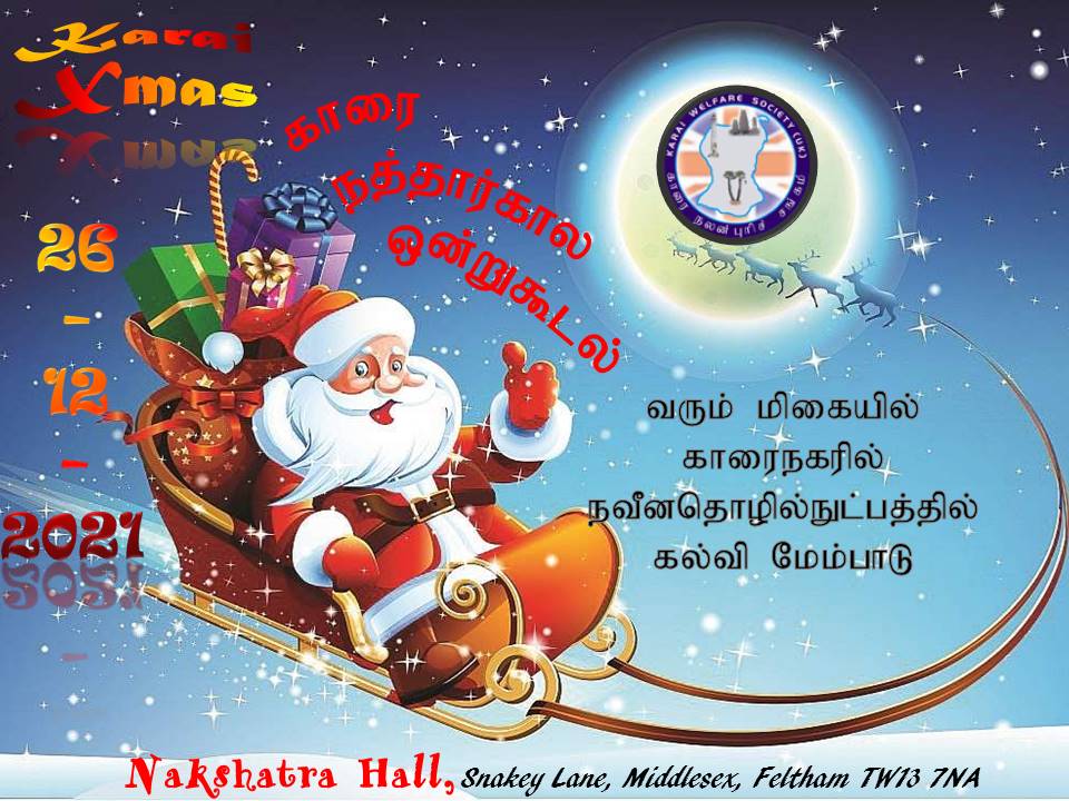 நாம் ஏற்கெனவே அறிவித்ததிற்கு இணங்க அடுத்த மாதம் 26 ம் திகதி (26.12.2021) நத்தார் கால ஒன்றுகூடலை நடாத்த உள்ளோம்.
